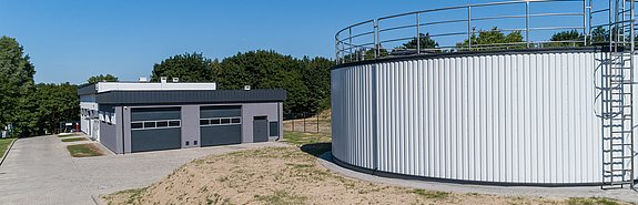 The project included the construction of a new water treatment building with garage space, two concrete clean water retention tanks with a capacity of 300 m3 each, rinse water tank, and water - sewerage and electrical power underground infrastructure. Paved internal roads and a manoeuvring area also had to be constructed.